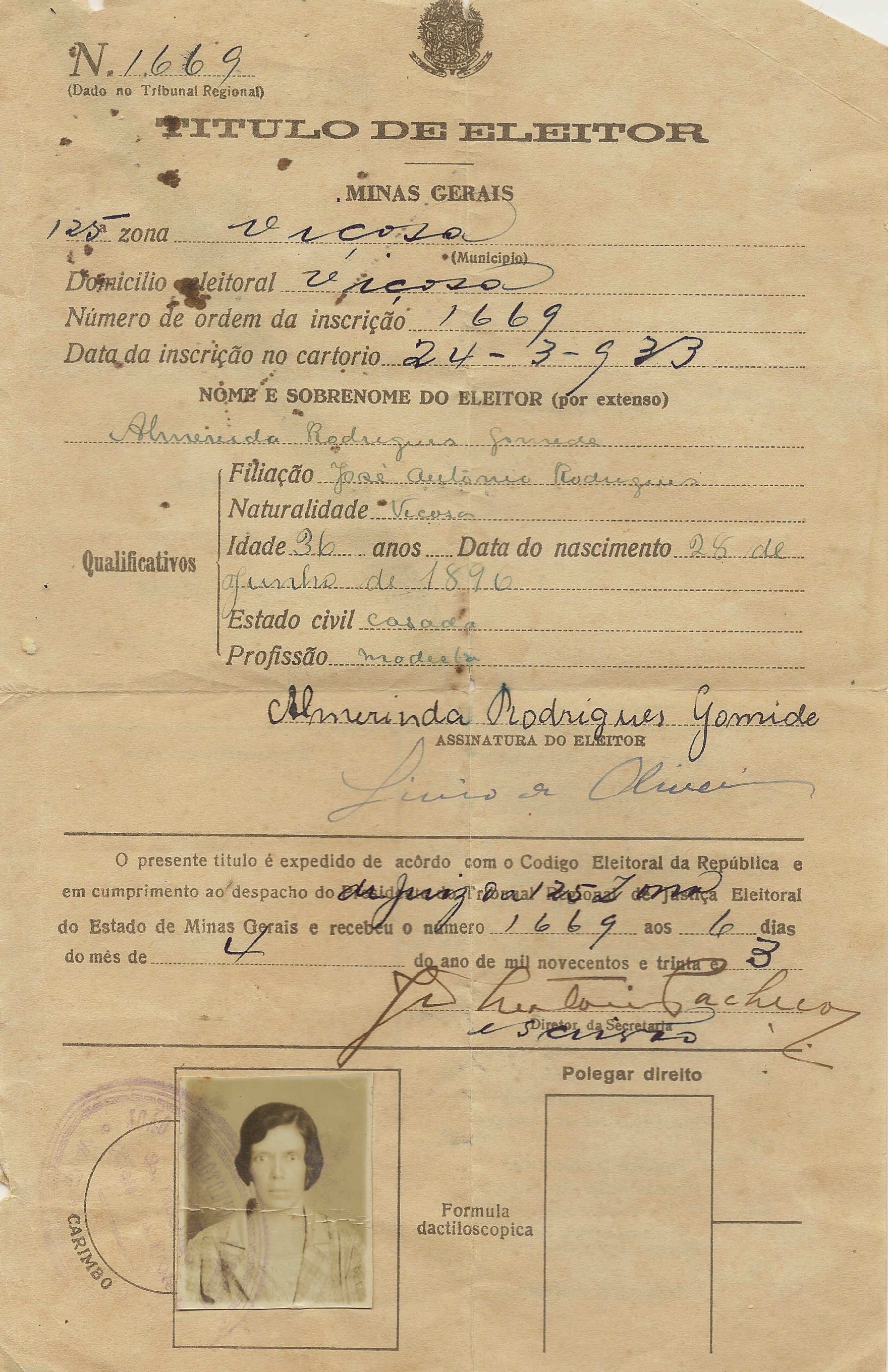 Título de Eleitor de Almerinda Gomide